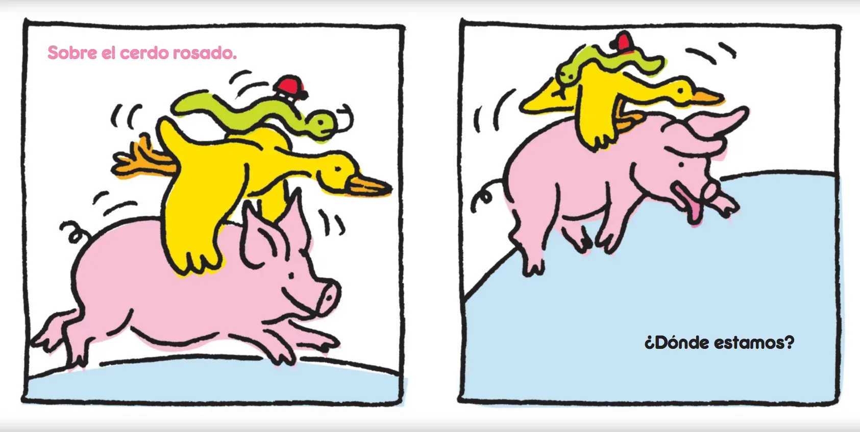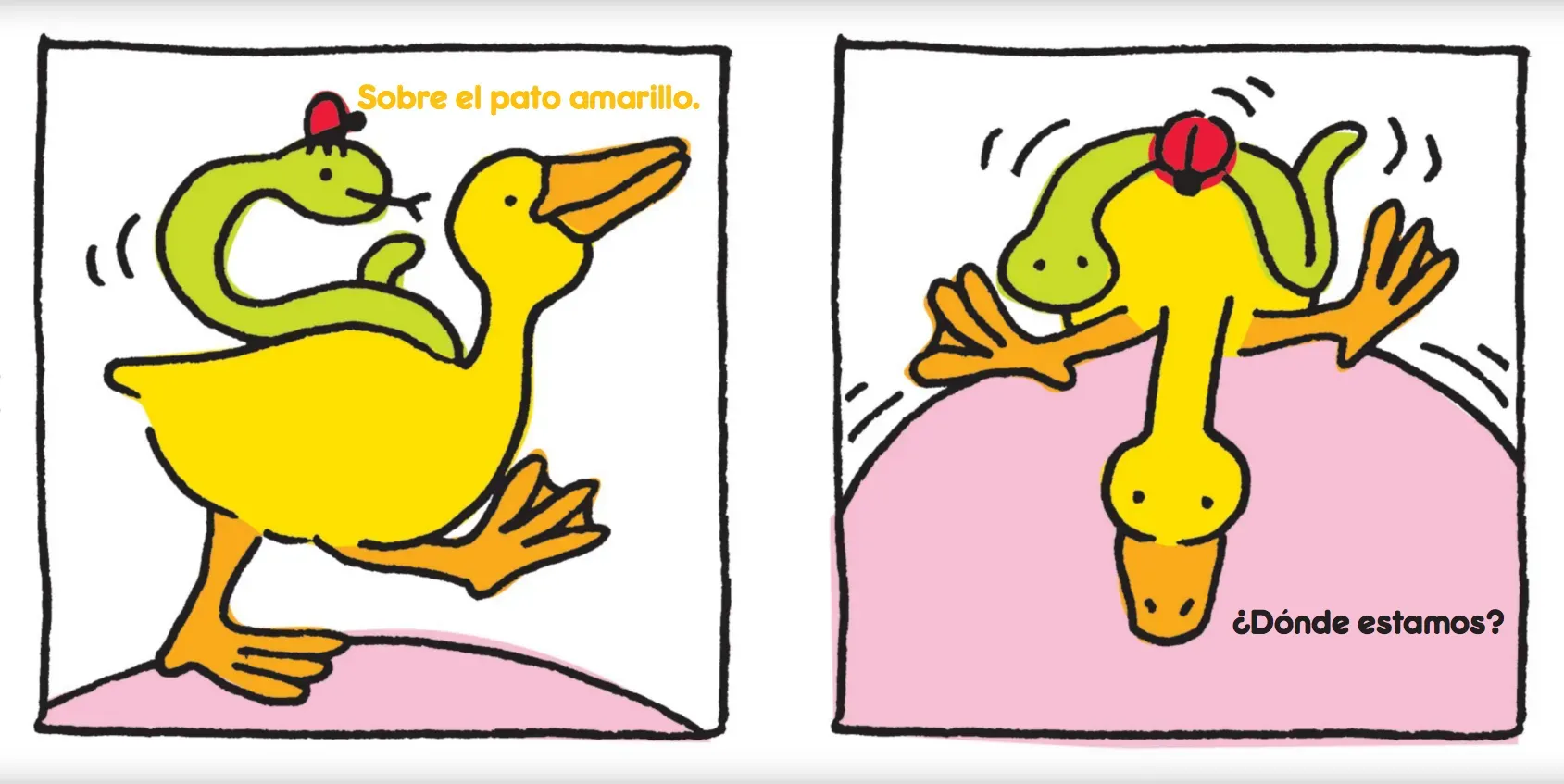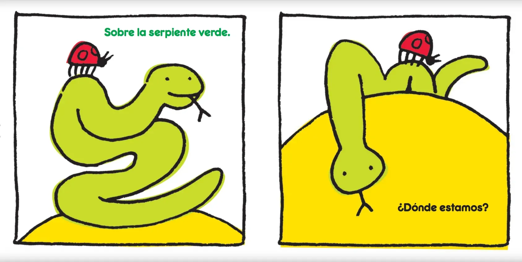 Un coquito se pregunta dónde está y, de repente, descubre que está sobre una serpiente verde. «¿Y ahora, dónde estamos?», preguntan ambos. «Sobre un pato amarillo». «¿Y ahora?». Esta simpática y sencilla historia de la ilustradora Gabriela Rubio inicia a los más pequeños en el descubrimiento de los ...
