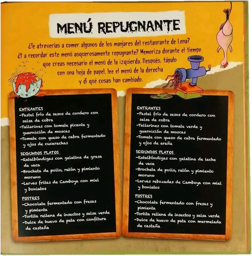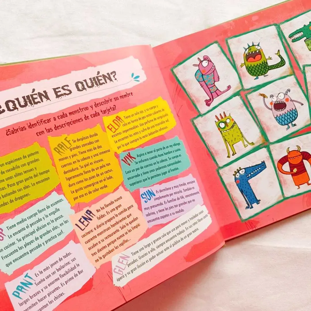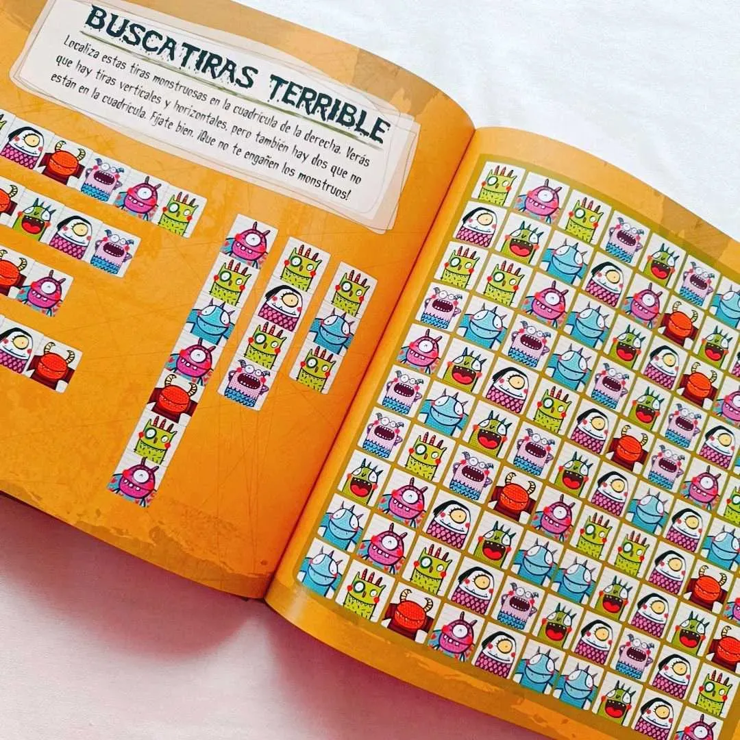 Un libro para los valientes que se atrevan a adentrarse en el terrorífico mundo de juegos de observación, de memoria y de lenguaje protagonizados por tres familias de monstruos. Los nueve personajes del libro nos mostrarán sus costumbres, su carácter y sus terribles aficiones mediante treinta juegos...