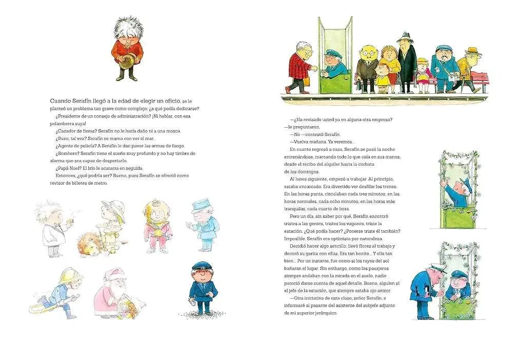 Serafín es un soñador. Cree en la libertad y en la belleza. Vive en las nubes y tiene ideas descabelladas. Pero también se pone manos a la obra y trabaja duro para hacer realidad sus fascinantes proyectos y fantasías.