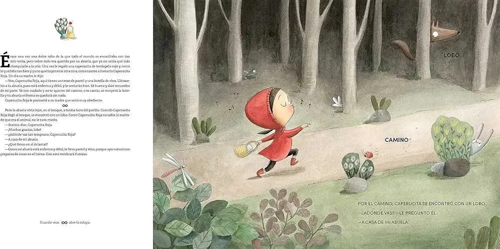 Libros con tres niveles de lectura: - Los textos originales de 1812 (Jacob y Wilhelm Grimm) enteros, sin embellecer ni censurar, para leer en voz alta. - Una sencilla y cuidada adaptación en letra de palo para los más pequeños. - Palabras clave en mayúscula para seguir la historia.