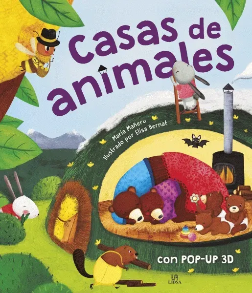 La gran familia de los conejitos vive en una madriguera bajo el suelo, arropada por el musgo que crece encima. No los ves, pero tienen una casita llena de pasillos con habitaciones. Las abejas viven en una colmena, los osos en una cueva y los castores en una cabaña y cada casa tiene su encanto.
