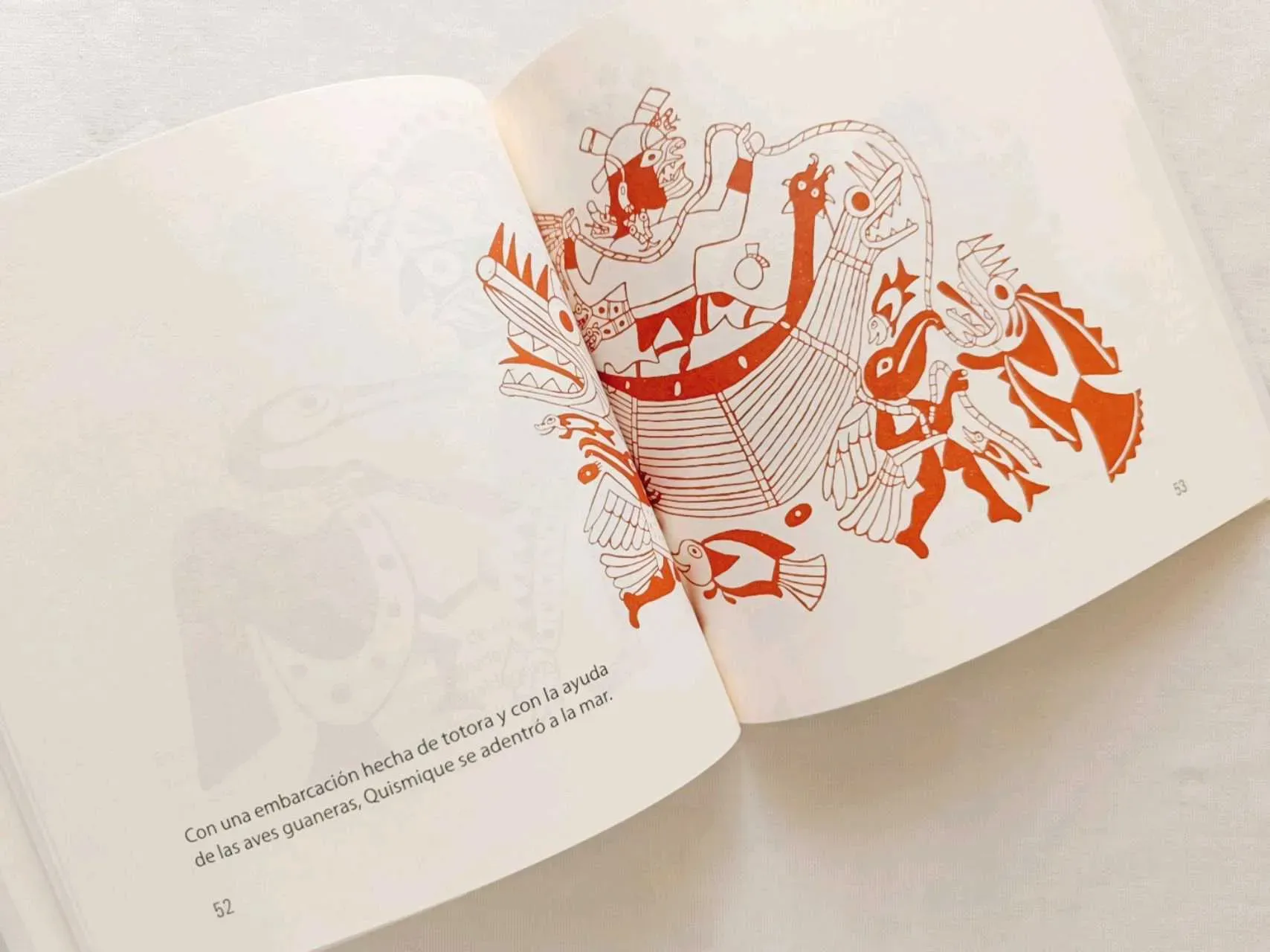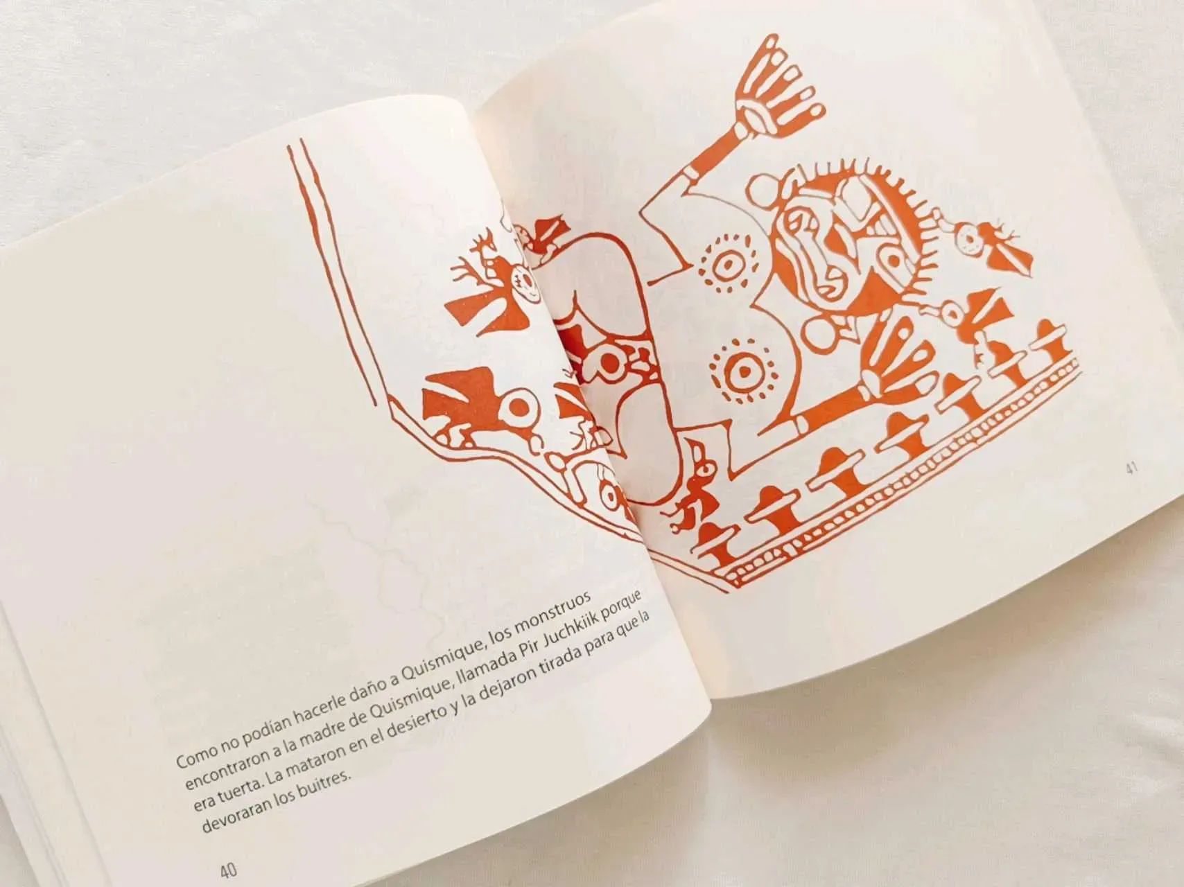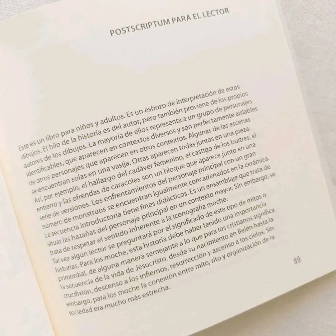 Este libro narra la gran aventura de Quismique héroe de la mitología moche que debe descender al mundo de los muertos y pelear con los monstruos de las profundidades.