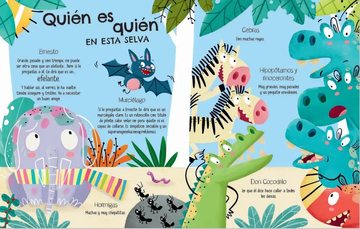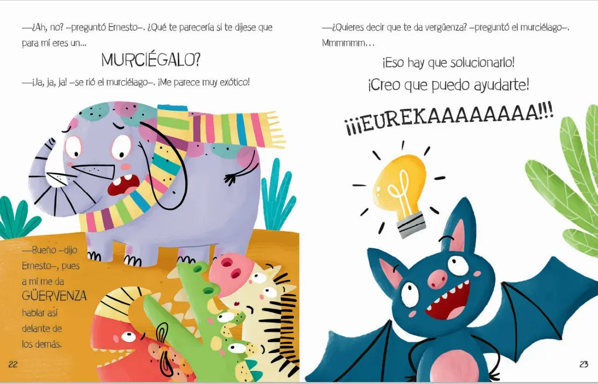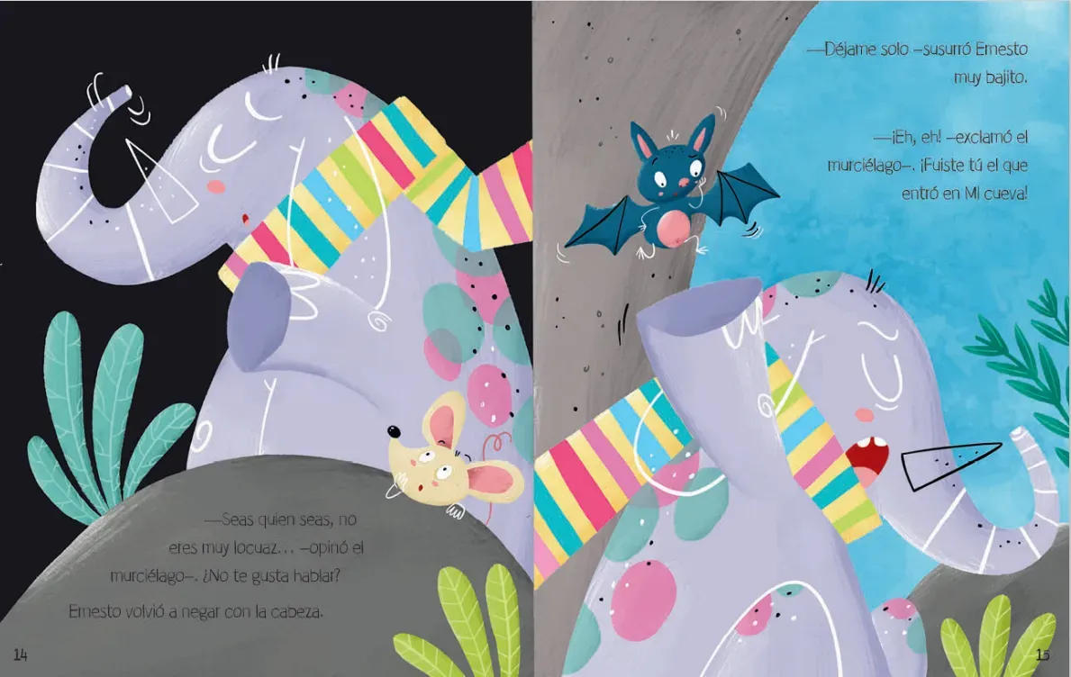 Ernesto es muy grande, gris y con trompa. Un perfil inconfundible, ¿verdad? ¡Solo puede ser un elefante! Pues no. Resulta que es un elefante. O eso dice él... Y esto de hablar del revés le da nastante vergüenza, por eso pasa la mayor parte del tiempo solo. Por suerte, tiene un buen amigo que va a en...