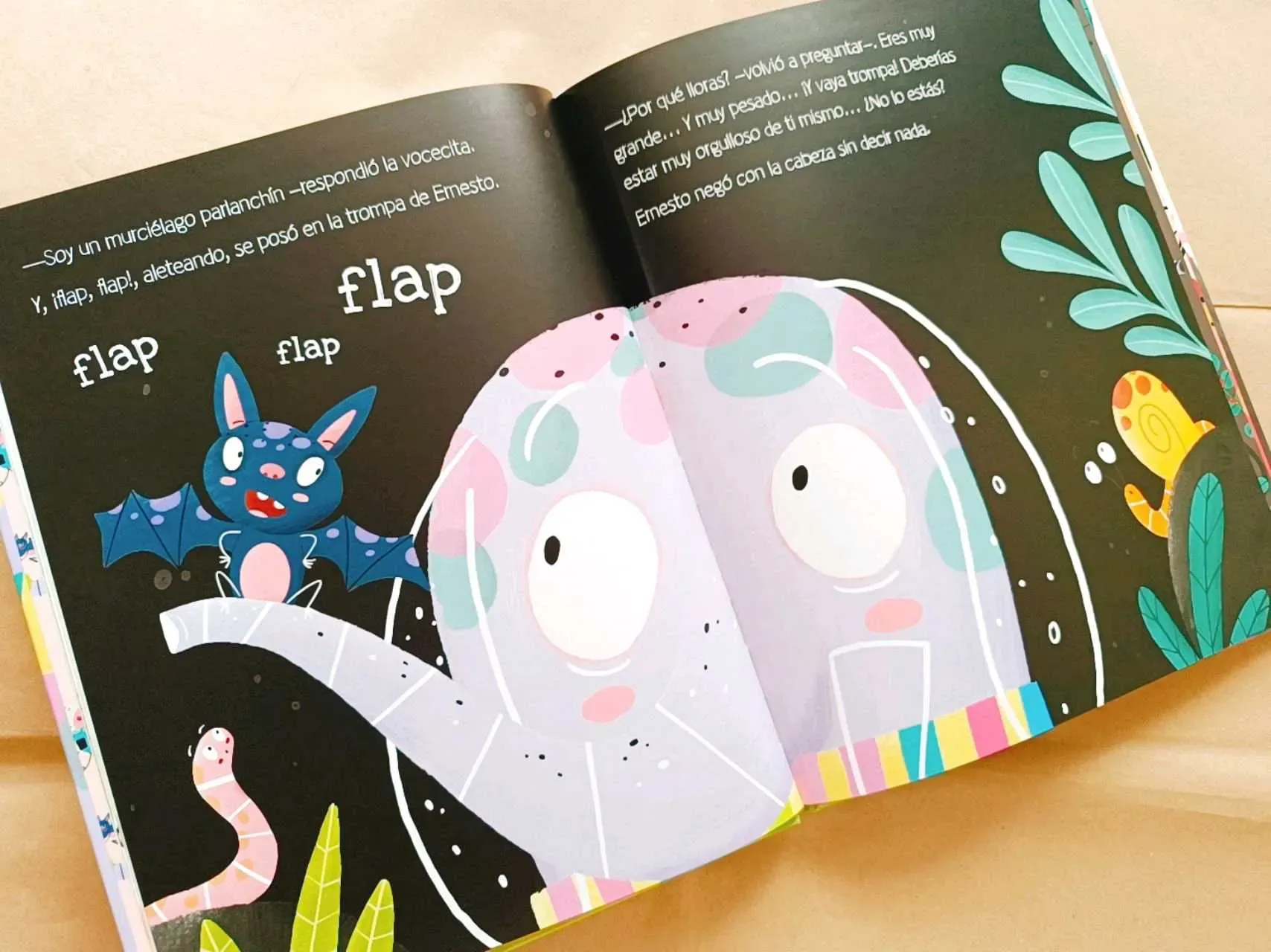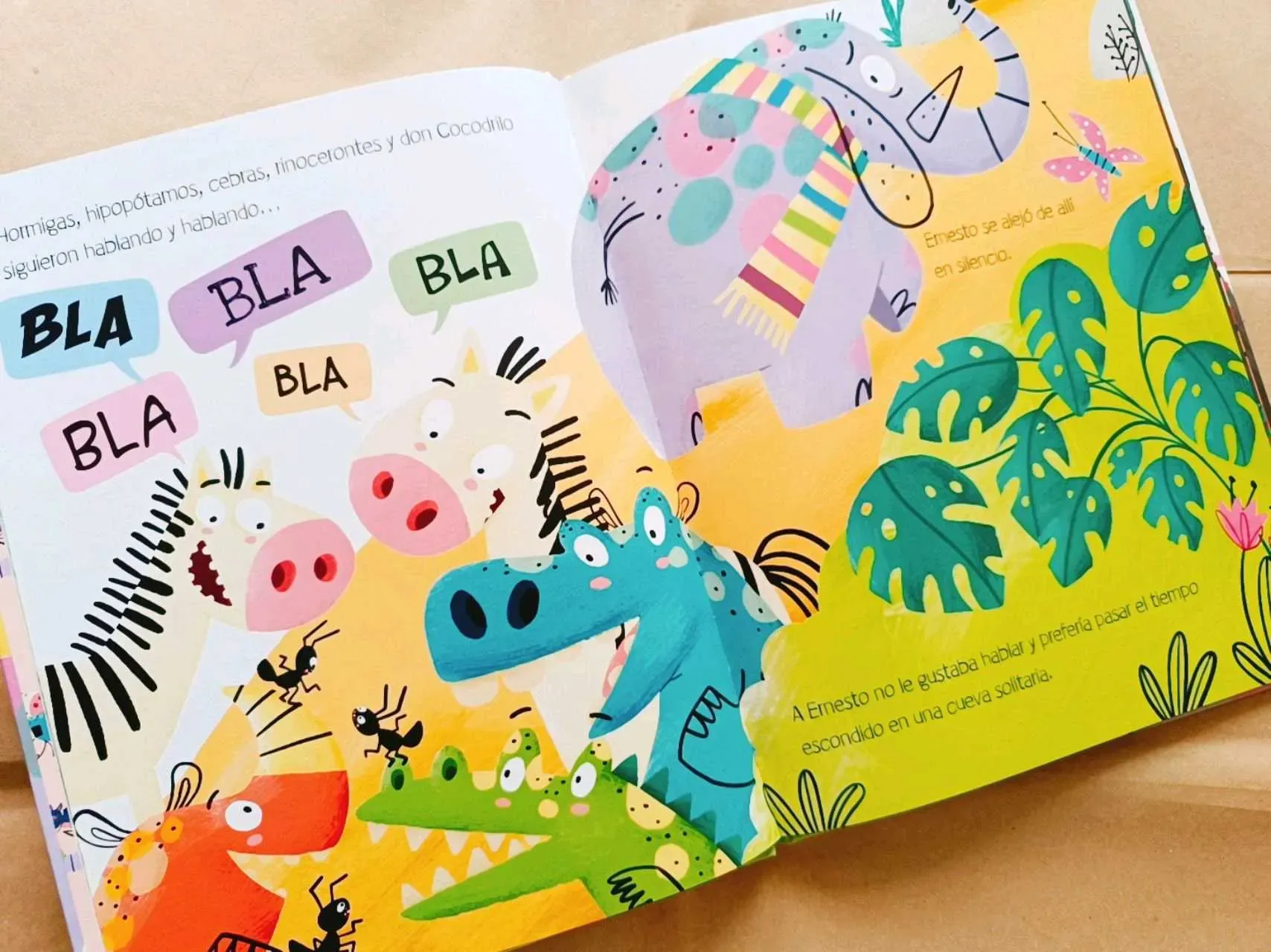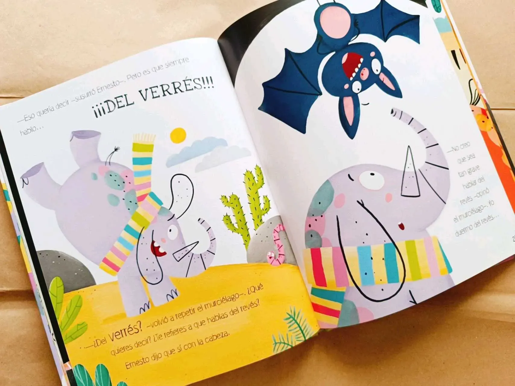 Ernesto es muy grande, gris y con trompa. Un perfil inconfundible, ¿verdad? ¡Solo puede ser un elefante! Pues no. Resulta que es un elefante. O eso dice él... Y esto de hablar del revés le da nastante vergüenza, por eso pasa la mayor parte del tiempo solo. Por suerte, tiene un buen amigo que va a en...