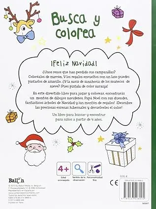 ¿Unos renos que han perdido sus campanillas? Coloréalos de marrón. Y los regalos envueltos con un lazo puedes pintarlos de amarillo. ¿Y la nariz de zanahoria de los muñecos de nieve? ¡Pues píntala de color naranja! En este divertido libro para jugar y colorear, encontrarás un montón de dibujos navid...