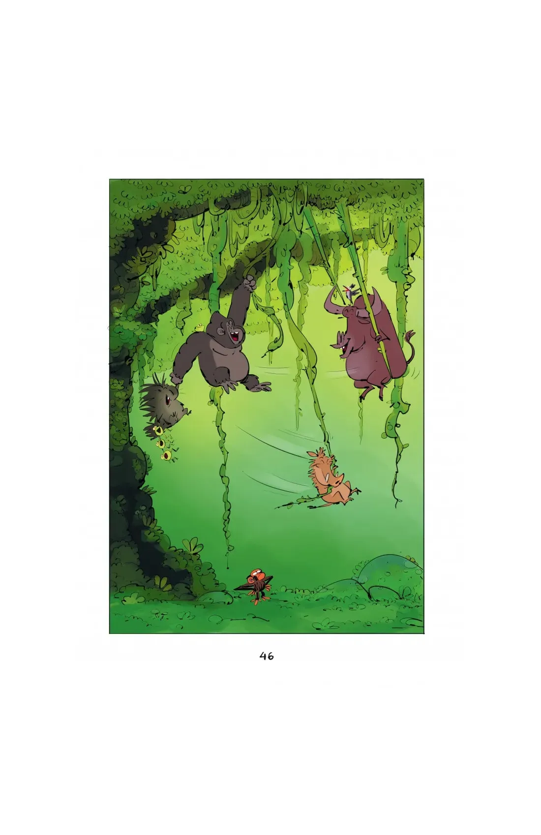 Llegó el día del paseo semanal de Jim Pancé. Por fín podrá disfrutar del silencio y escuchar tranquilamente los sonidos de la jungla. Hasta que su mejor amigo, Norman, decide acompañarlo y, con él, ¡casi todos los animales de la selva!