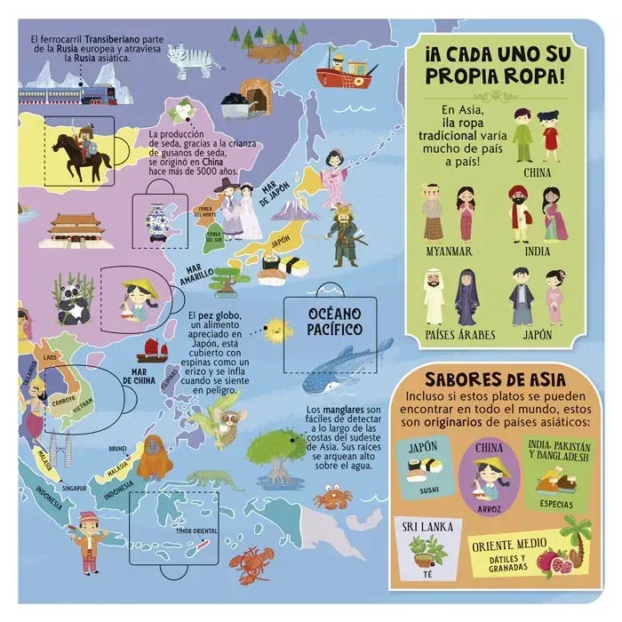 El Atlas Mundial está destinado a todos los pequeños viajeros que deseen conocer muchos datos interesantes sobre nuestro hermoso planeta. Haz este increíble viaje alrededor del mundo y levanta las solapas para acceder a una gran cantidad de información. Te divertirás descubriendo muchas curiosidades...