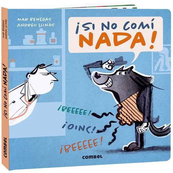 Lobo tiene dolor de tripa, el médico lo examina.