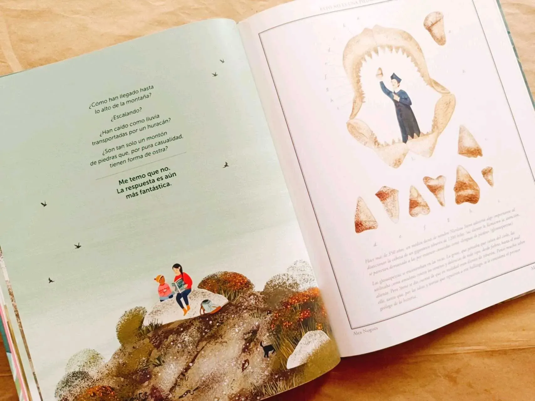 ¿Cómo han llegado unas ostras hasta lo alto de una montaña? Después de millones de años la Tierra tiene mucho que contarnos. Alex Nogués nos guiará por los misterios de la geología en este bellísimo y apasionante álbum ilustrado por Miren Asiain Lora. ¿Preparados para convertiros en geólogos?